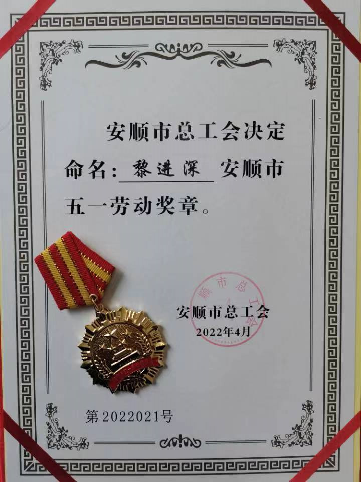 近日,从“奋进新征程·喜迎二十大”2022年安顺市庆祝“五一”国际劳动节暨命名大会传来喜讯,奇乐棋牌马克思主义学院院长、教授黎进深被授予“安顺市五一劳动奖章”。
