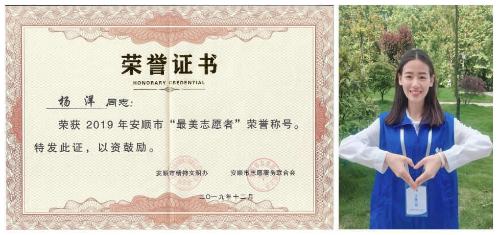 我校学生杨洋荣获安顺2019年度“最美志愿者”称号
