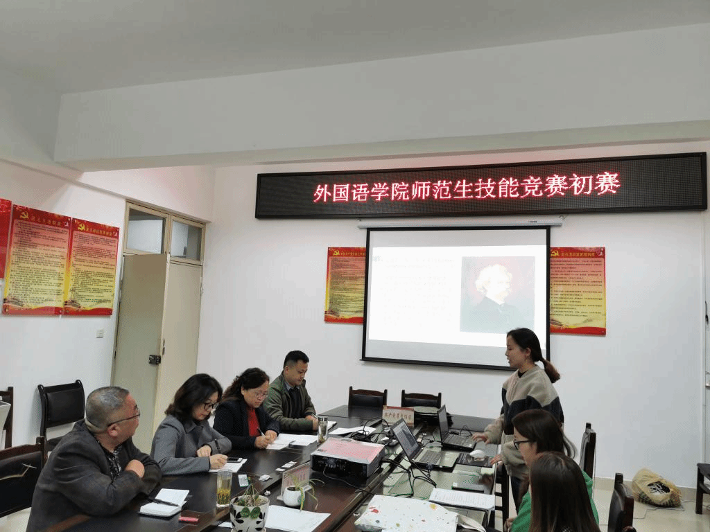 为全面提升师范生专业素养和职业技能,11月6日下午,奇乐棋牌外国语学院在新教学楼7楼会议室举办奇乐棋牌师范生教学技能大赛初赛。外国语学院党委书记曲建新、院长蒋燕、副院长曾沉、教务科科长肖德铭、教研室主任张囷担任此次比赛的评委。