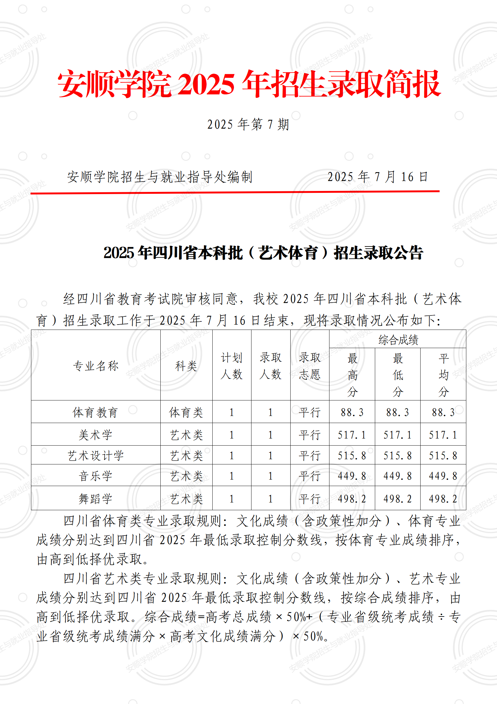 2025年录取简报【第7期】(四川省本科批艺术体育类)