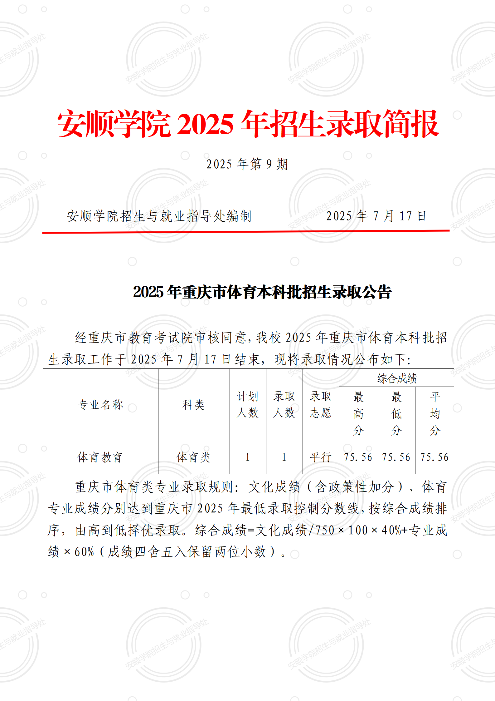 2025年录取简报【第9期】(重庆市体育本科批)