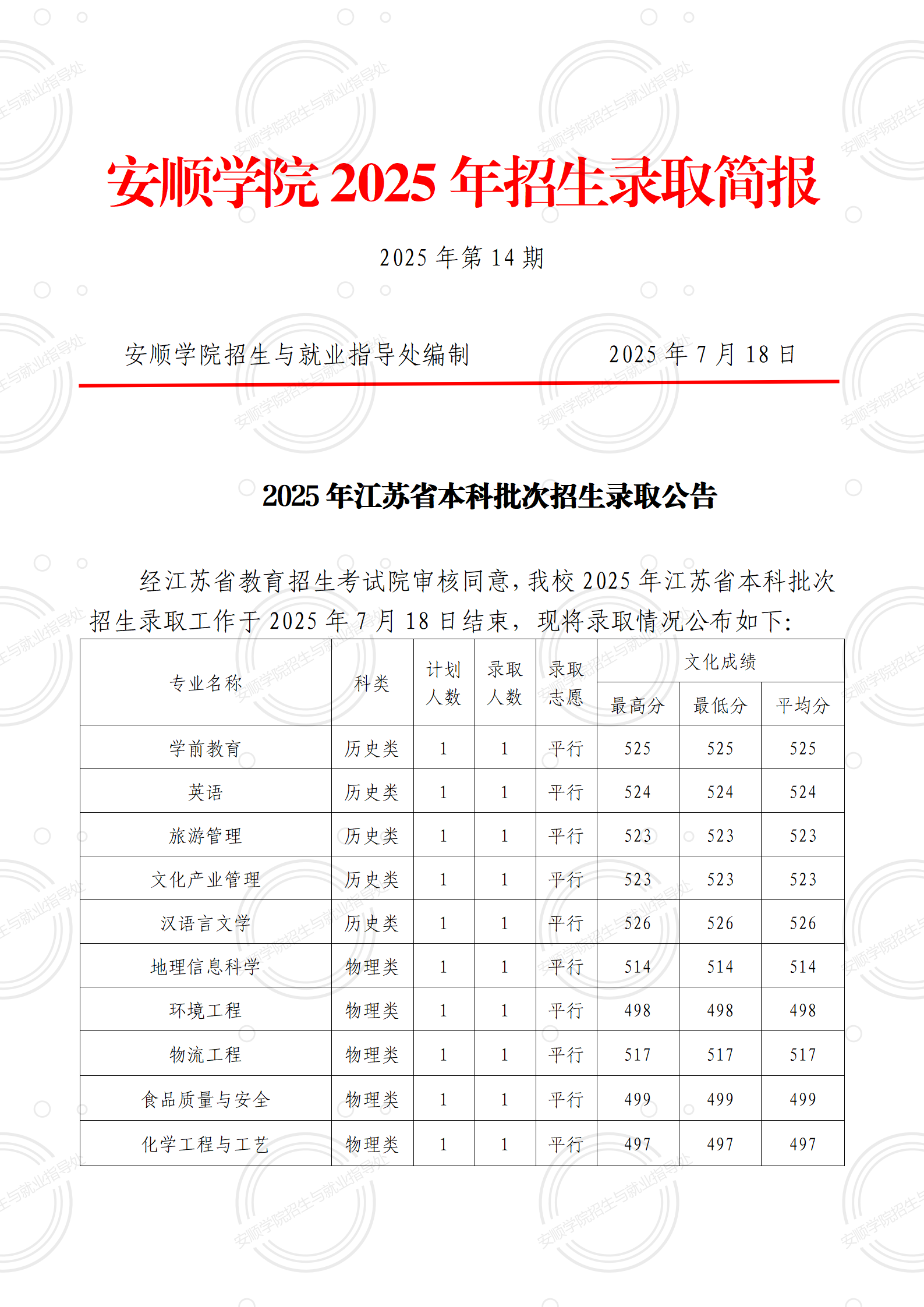 2025年录取简报【第14期】(江苏省本科批)