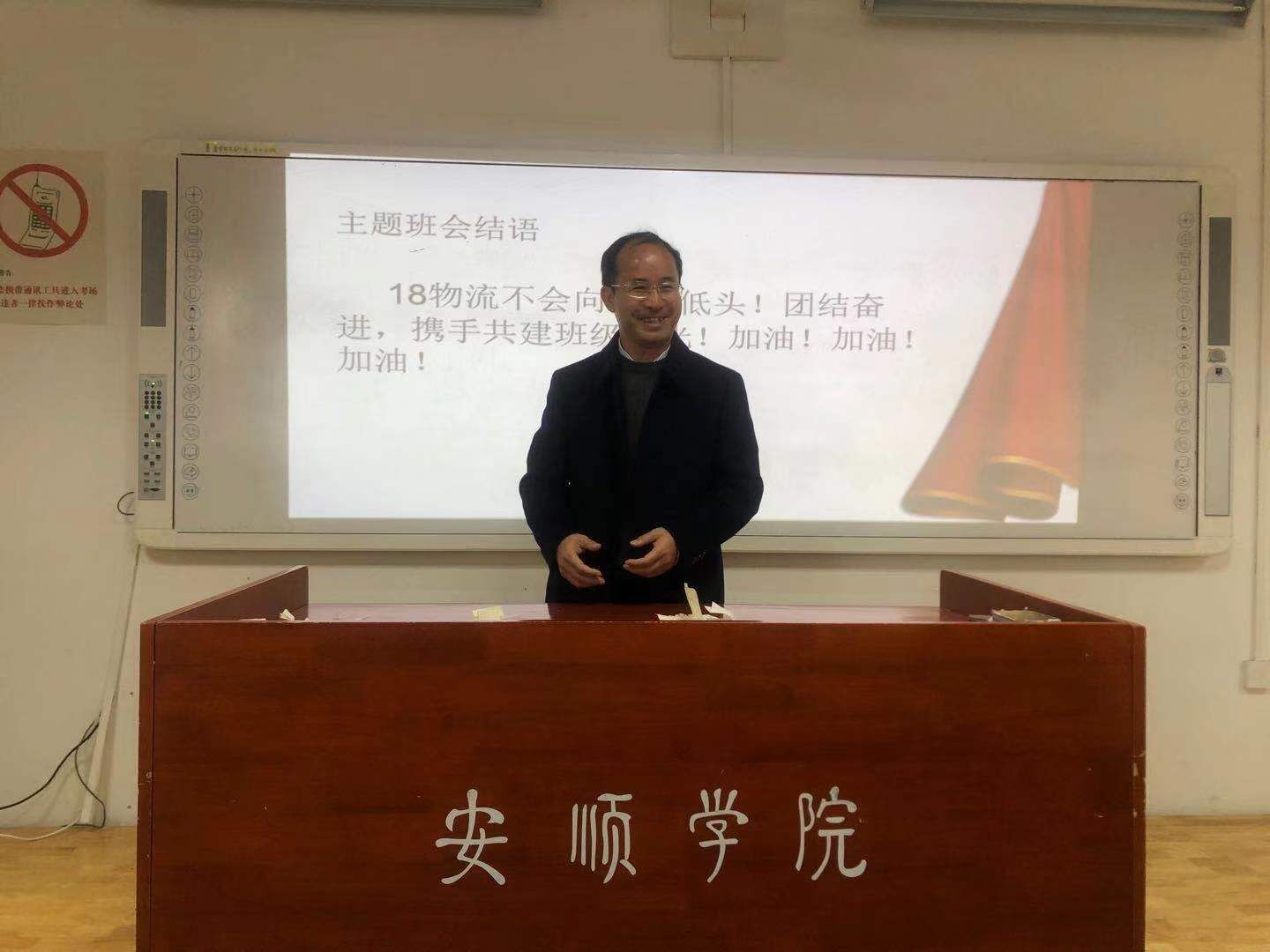 11月17日,奇乐棋牌党委书记、经济与管理学院2018级物流工程班班级导师罗荣彬参加“团结奋进 开启新程”思政主题班会。