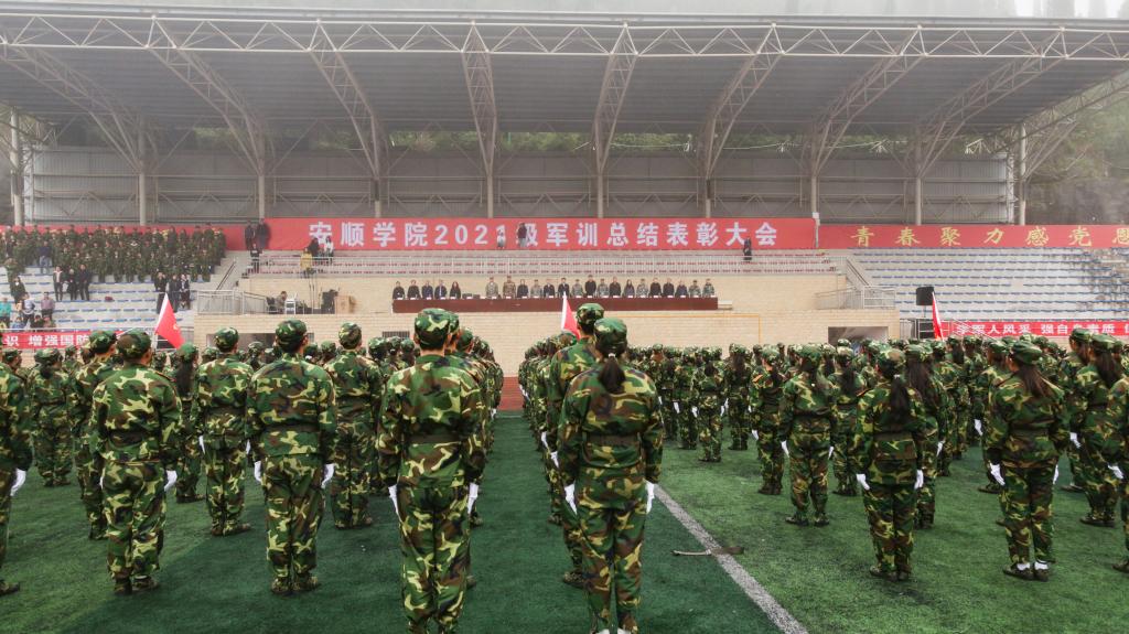 张来作军训总结。他从目标明确、严格实施,实现了军训预期目标;纪律严明、拼搏进取,保证了军训实施质量;传承精神,担当使命,弘扬了军训优良作风三个方面对本次军训工作进行总结。他指出,同学们在精彩的汇报中,有洪亮的口号,有高昂的士气,有严整的军姿,有饱满的热情,有新时代青年的坚强和追求,实实在在在感染了每一个人,充分展现了安院学子艰苦奋斗、勇敢顽强的精神面貌。同学们的出色表现,发出了“强国有我,请党放心”的呼号,为中国共产党成立一百周年献上了一份饱含真情而形式独特的礼物。他强调,军训虽然结束了,但大学的拼搏才刚开始,还要继续,并向同学们提出三点期望:第一,立志。希望同学们明确学习目标,树立崇高理想,“凡事预则立,不预则废”,志存高远,情怀家国,心系天下,勇担时代重任。第二,笃行。希望同学们坚持不懈,事必躬亲,知行合一,恰如“安道乐学,顺理笃行”的校训精神,在实践中求真知,在实践中长才干。第三,勤奋。“勤学如春起之苗,不见其增,日有所长”,安院学子当褪浮躁之气,孜孜以求,勤奋好学,争做德才兼备的高素质人才。