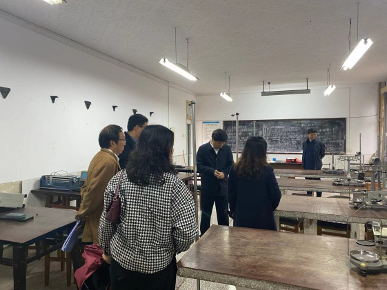 奇乐棋牌院长陈云坤(左四)在物理楼调研