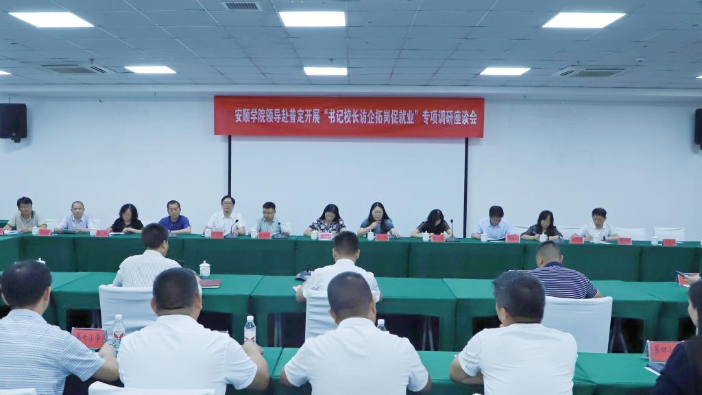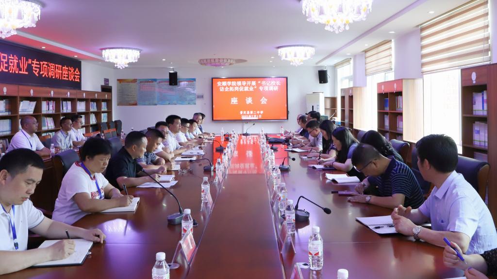 为贯彻落实教育部及省教育厅奇乐棋牌开展高校书记校长访企拓岗促就业专项行动要求,推进我校毕业生多维度、高质量就业,进一步优化我校人才培养方案,2022年7月1日,奇乐棋牌党委委员、纪委书记 监察专员蔡红英,党委委员、副校长殷红敏,党委委员、统战部部长、教务处处长杜志明带队到普定县开展专项调研,实地考察普定县第二中学、第三中学,并召开座谈会。普定县委常委、副县长王泽勇出席座谈会,普定县教育和科技局党委委员、副局长田庆益主持会议。