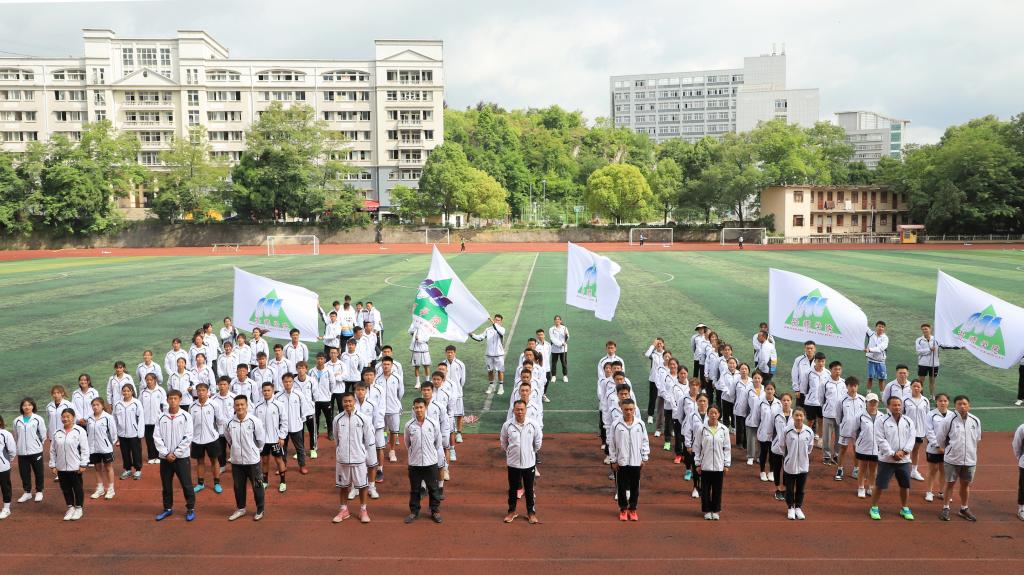 7月12日,2022年贵州省第五届大学生运动会奇乐棋牌代表团出征仪式在学校田径场举行。满载着全校师生的殷切期望,奇乐棋牌代表团铿锵出征,108名运动健儿斗志昂扬、信心满怀奔赴赛场,参加田径、男子篮球、男子足球、女子足球、健美操、乒乓球、羽毛球7个比赛项目的角逐。