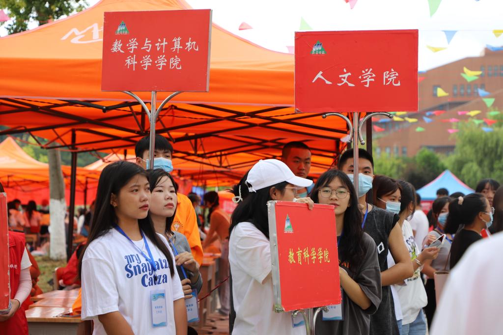 溽暑还未消散,安院已荷沉满塘,校园里一排排橙色的帐篷勾勒出迎新的最美风景线。各二级学院志愿者们接过新同学手里沉重的行李,带领新同学完成报到的各项流程,耐心地为新同学讲解注意事项,还不忘介绍一番美丽的校园。