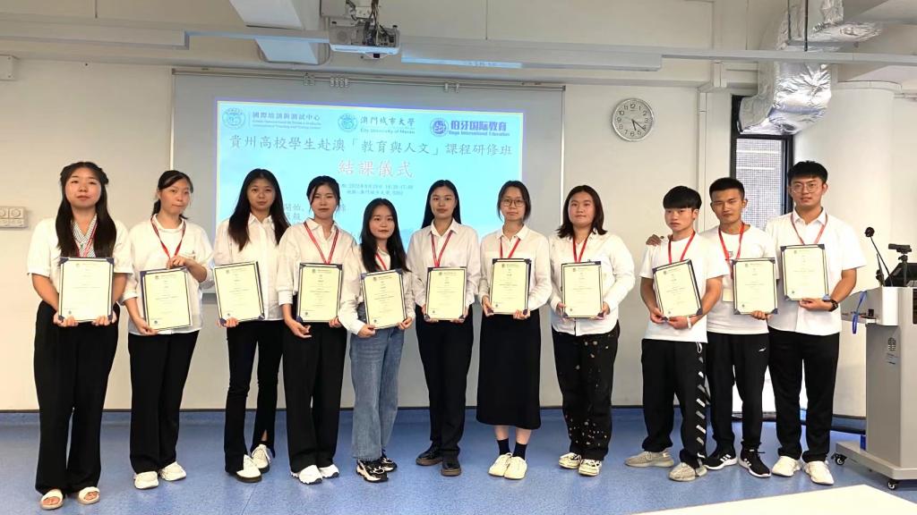 据悉,今年暑假,我校已先后派出两批学生共计14人赴澳门城市大学开展不同专题的研学活动。第一批研学活动主题为“贵州省高校学生赴澳人工智能课程研修班”,于8月8日至21日圆满结束。我校派出的3位数计学院学生表现优异,均获得结业证书。