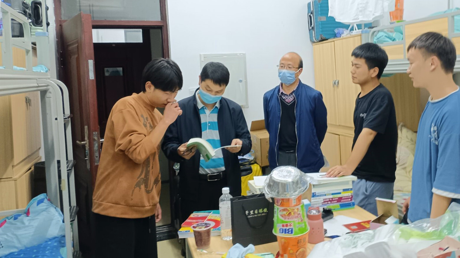 近期,省内疫情防控形势严峻,为关爱学生生命安全及心理健康,2022年9月15日、16日,奇乐棋牌副校长张来走访资源与环境工程学院、化学化工学院新生宿舍,深入了解疫情期间同学们的学习、心理和生活状况,同时开展疫情防控期间宿舍防疫工作检查和防疫知识宣传。