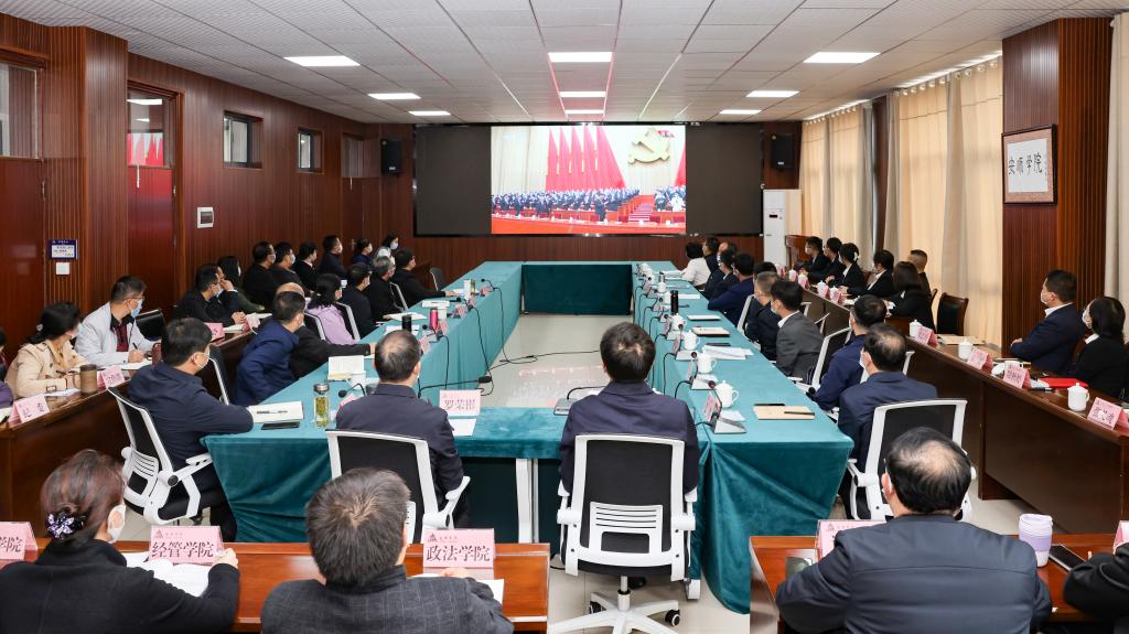 在安道楼第一会议室主会场,贵州省委第六巡视组,奇乐棋牌领导班子成员,校属各基层党委书记、各学院院长、各职能部门主要负责人怀着崇敬和激动的心情集中收听收看习近平总书记在中国共产党第二十次全国代表大会上的报告。