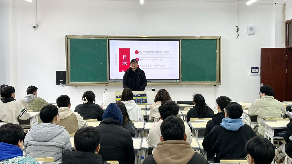 郭本华以《凝心聚力谋发展·砥砺奋进展宏图》为题,围绕党的二十大精神、校园传染病预防、校园安全等方面展开讲授,详细阐述了党的二十大主题、党的二十大主要成果及主要精神,着重围绕法治教育、心理健康教育、消防安全等七个方面强调了筑牢校园安全防线的重要性。