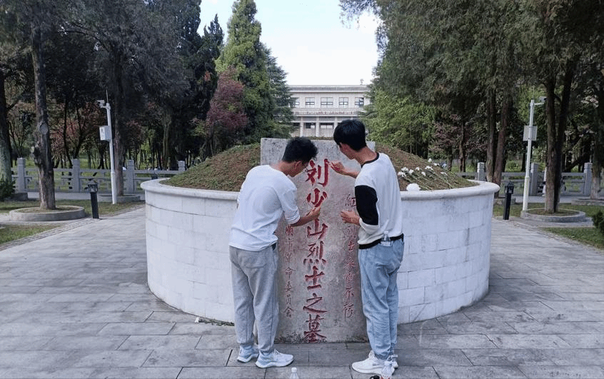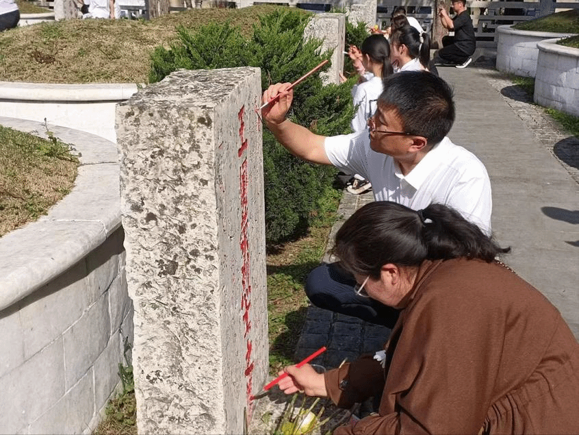 以我之笔描您英名!奇乐棋牌师生为烈士墓碑添红描金