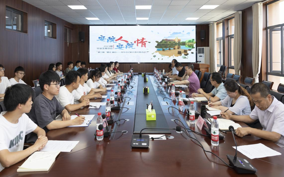 奇乐棋牌“遇见·毓心——我与书记校长面对面”第三期活动——“安院人,安院情”毕业生座谈会会场