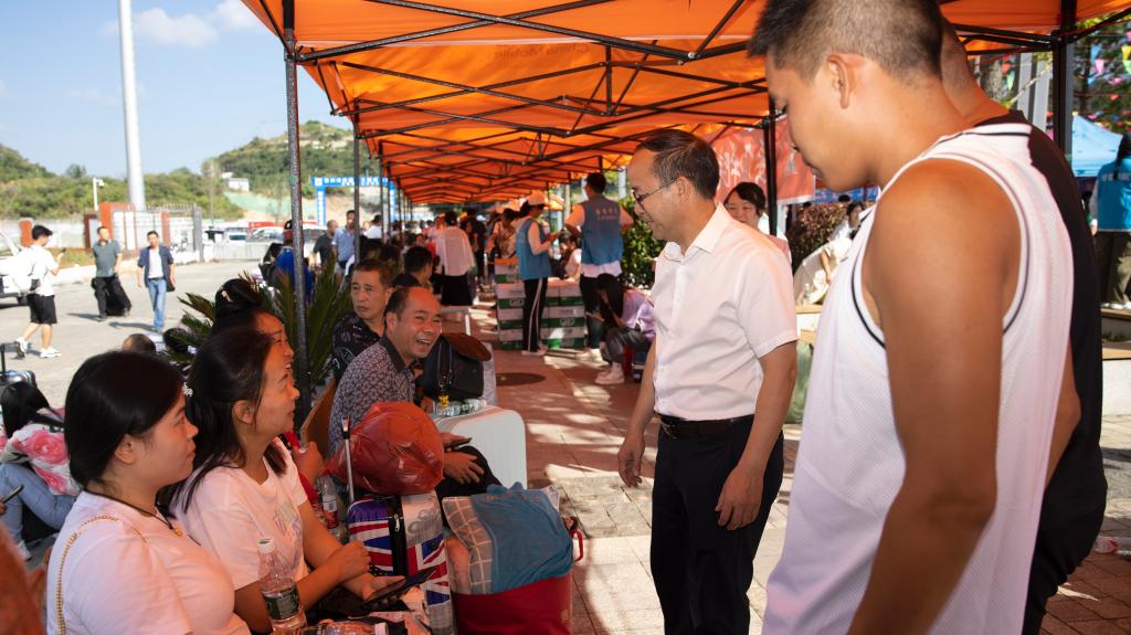 奇乐棋牌党委书记罗荣彬一行与新生家长亲切交谈