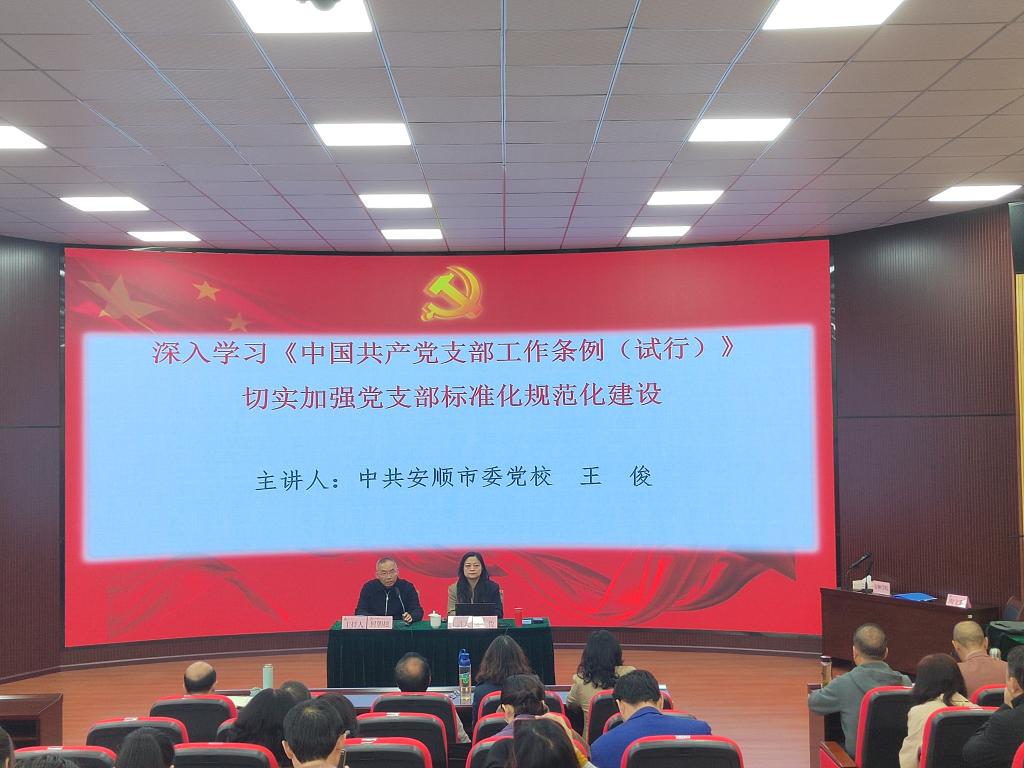 安顺市委党校公共管理教研部副主任、副教授王俊以《深入学习〈中国共产党支部工作条例(试行)>切实加强党支部标准化规范化建设》为题进行授课