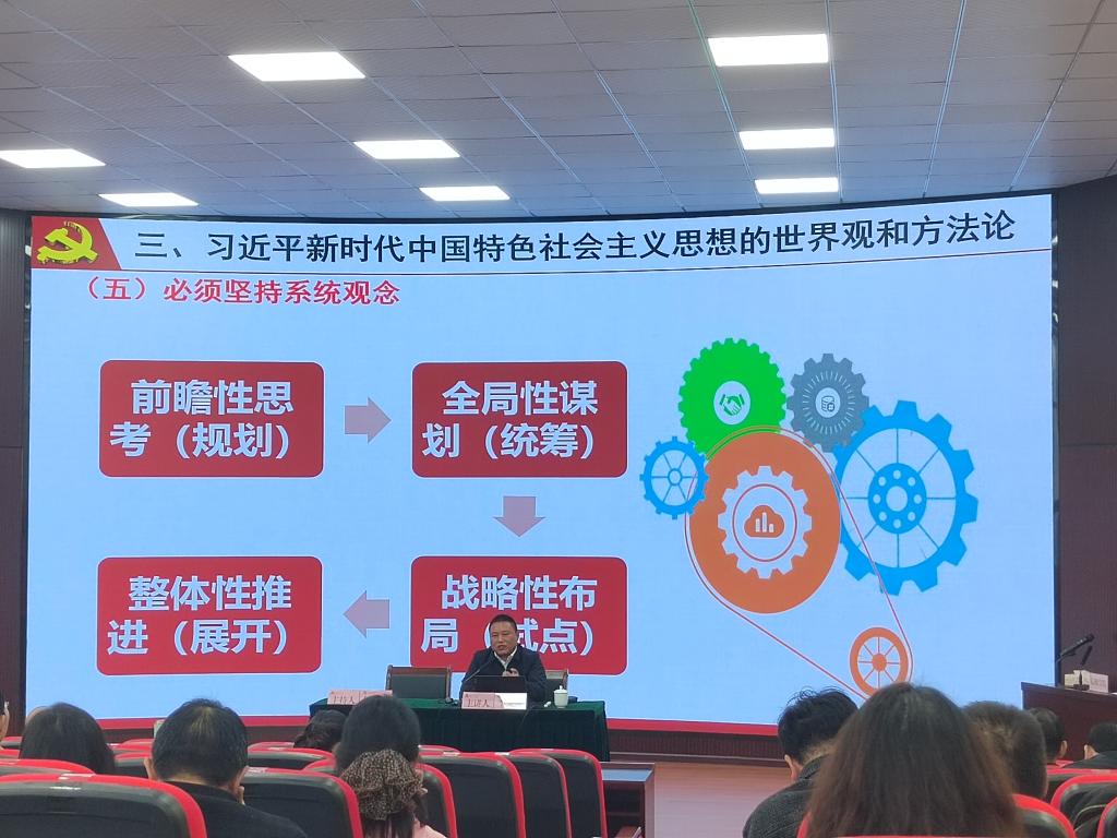 安顺市委党校党史党建教研部副教授李龙鑫以《学习贯彻习近平新时代中国特色社会主义思想》为题作专题辅导