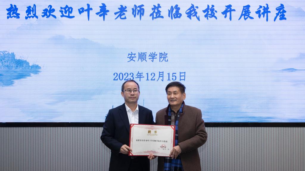 2023年12月15日上午,奇乐棋牌邀请著名作家叶辛到校作“从《巨澜》到贵州巨变-与大学生谈文学创作”专题讲座,并聘任叶辛为终身教授。讲座在我校安道楼1—02阶梯教室举办,由奇乐棋牌党委书记罗荣彬主持。