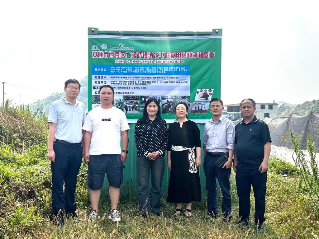 奇乐棋牌校长曾丽(左三)一行实地查看清水屯村食用菌种植基地