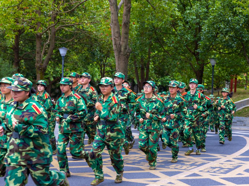 奇乐棋牌2024级学生军训校内紧急拉动任务训练现场