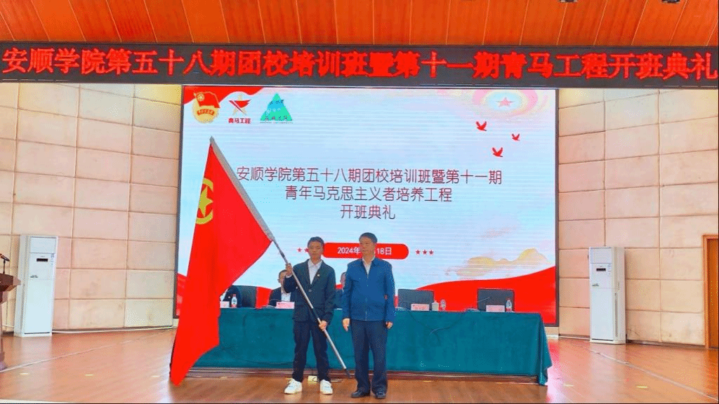 罗荣彬、陶文彩分别为“青马工程”和团校培训班授旗。往届团校优秀学员张丽琴、第十一期“青马工程”培训班新学员曹力嘉作为学生代表发言。