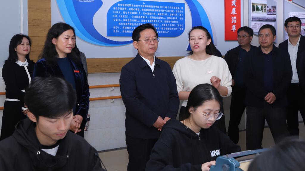 检查组对我校特殊教育学院的基础教育设施、特殊教育课程以及针对特殊学生的教学环境等方面进行了全方位的检查,充分认可我校针对特殊学生所开展的特殊教育课程及其取得的教学成果,并就特殊教育学院的发展提出了宝贵的意见和建议。