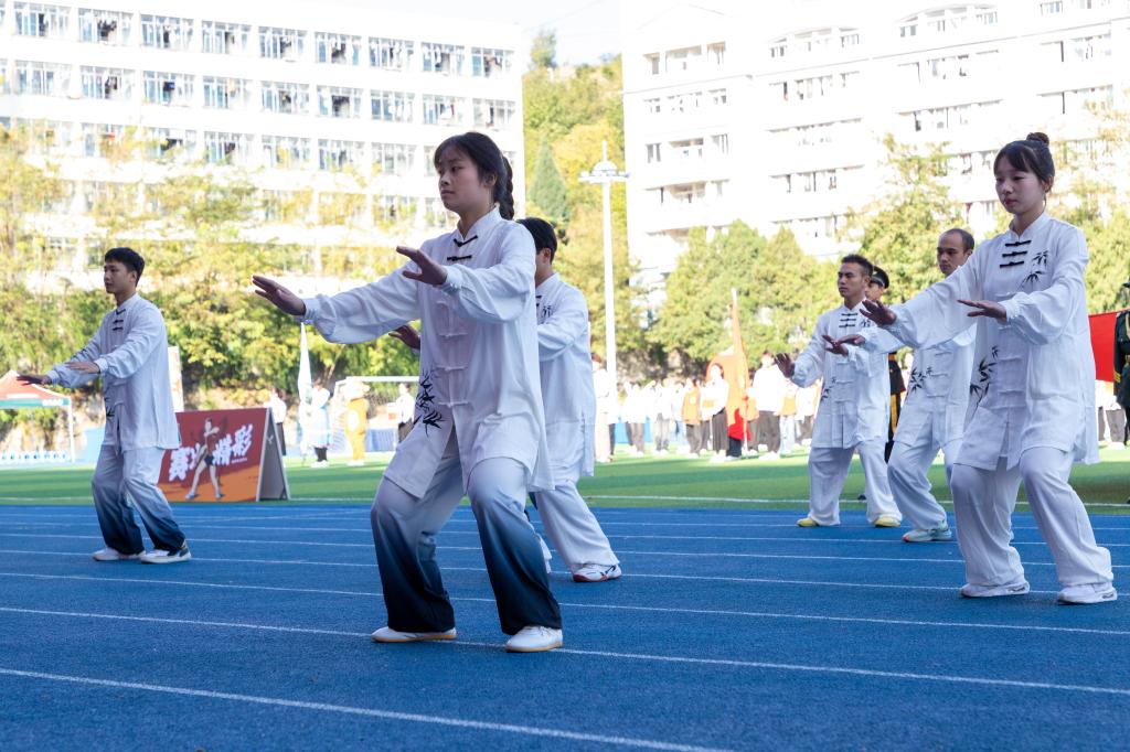 在开幕式节目表演上,太极拳表演宛如流动的水,舞者们的每个动作都如诗般和谐。紧接着,地戏的表演热闹非凡,演员们在舞台上讲述着那段悠久的历史。啦啦操热情洋溢,欢快的节奏将气氛推向高潮。最后,二重唱《我爱你中国》声甜如蜜,旋律悠扬,为这场盛会增添了无尽的韵味。