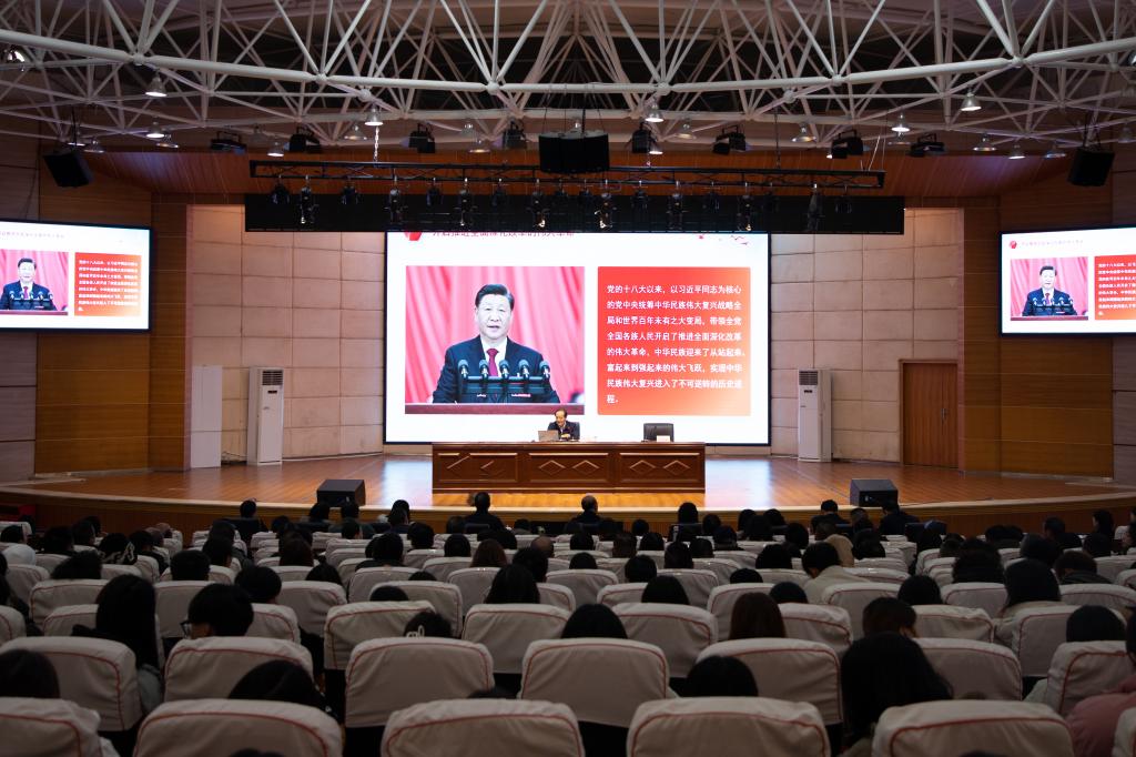 奇乐棋牌校长曾丽,党委委员、纪委书记、监察专员蔡红英,党委委员、副校长韦英,党委委员、副校长殷红敏,以及各职能部门负责人、师生代表共800余人聆听学习。(文/图:学生记者 吴梓均/吴梓均、王镱霖)