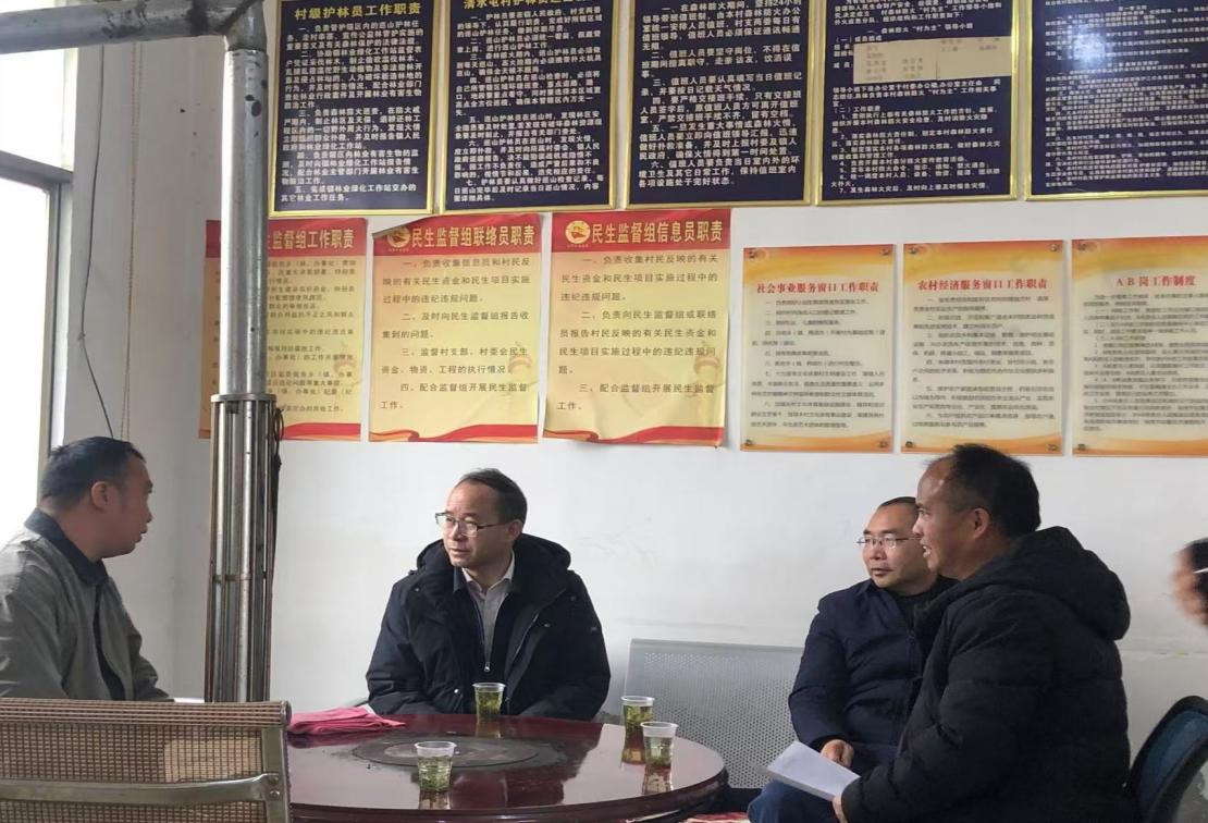 奇乐棋牌党委书记罗荣彬(左二)到清水屯村开展调研指导工作