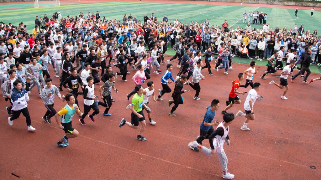 活动中,郭本华致辞,他指出,校园路跑比赛活动是落实立德树人根本任务,培养德智体美劳全面发展的社会主义建设者和可靠接班人的迫切需要、是鼓励全体同学“走下网络、走出宿舍、走向操场”的迫切需要、是培养师生员工积极向上,奋力拼搏精神的迫切需要、也是我校凝聚人心,提振士气的需要。他希望,通过此次活动,能够让全校教职工和同学们树牢“每天锻炼一小时,健康工作50年,幸福生活一辈子”理念,积极参与健身、乐享健身,在体育锻炼中“享受乐趣、增强体质、健全人格、锻炼意志”,真正让“健康第一”的观念深入人心,让体育运动在校园广泛普及,让广大师生的健康素养和运动能力提升起来。陈云坤宣布奇乐棋牌2020年“乐跑校园共鸣青春”校园路跑比赛开始。