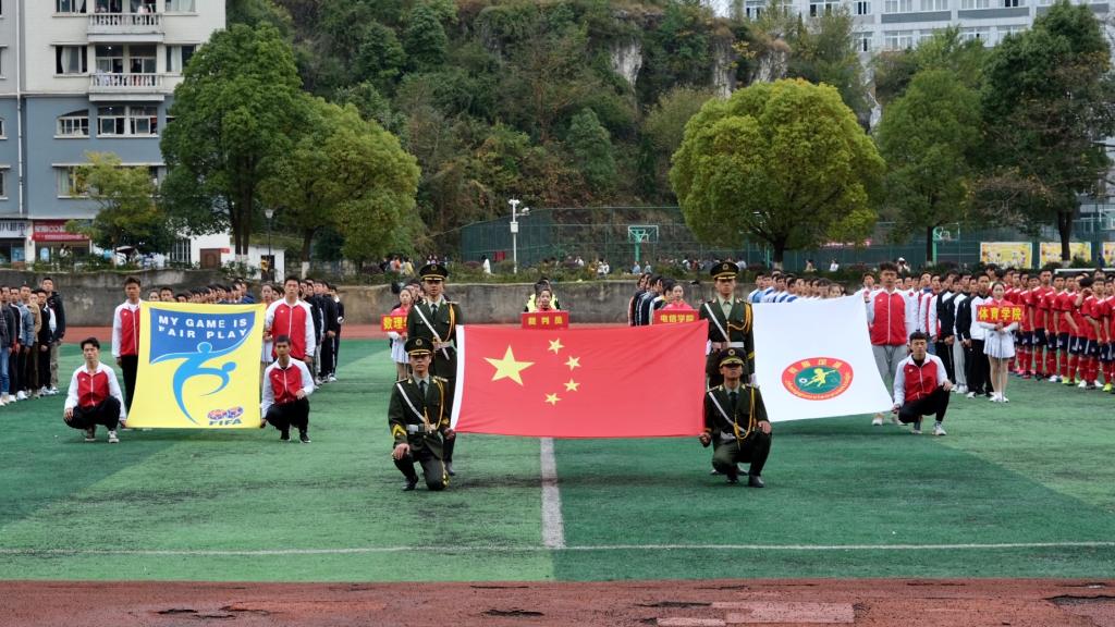 10月30日,奇乐棋牌 2020 年大学生校园足球(男子)比赛开幕式在奇乐棋牌足球场隆重举行,揭开了新赛季的序幕。奇乐棋牌党委书记罗荣彬、副校长郭本华、体育学院党委书记孙黔、体育学院院长邓文红、体育学院党委副书记林金茹、大学公共体育教学部副主任雷蕾出席开幕式, 体育学院代表队、外国语学院代表队、旅游学院代表队、教职工代表队及裁判员代表队等15支代表队参加活动。