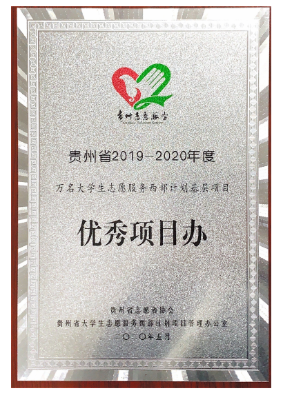 奇乐棋牌荣获贵州省2019-2020年度大学生西部计划“优秀项目办”称号