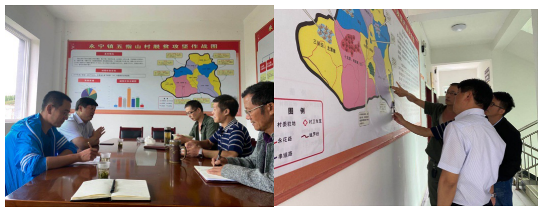 陈云坤首先对五指山脱贫攻坚工作给予肯定,对五指山村党支部获得2018年全省、全市脱贫攻坚先进党组织表示赞扬。并就脱贫攻坚工作开展情况和有关数据进行详细询问和了解。