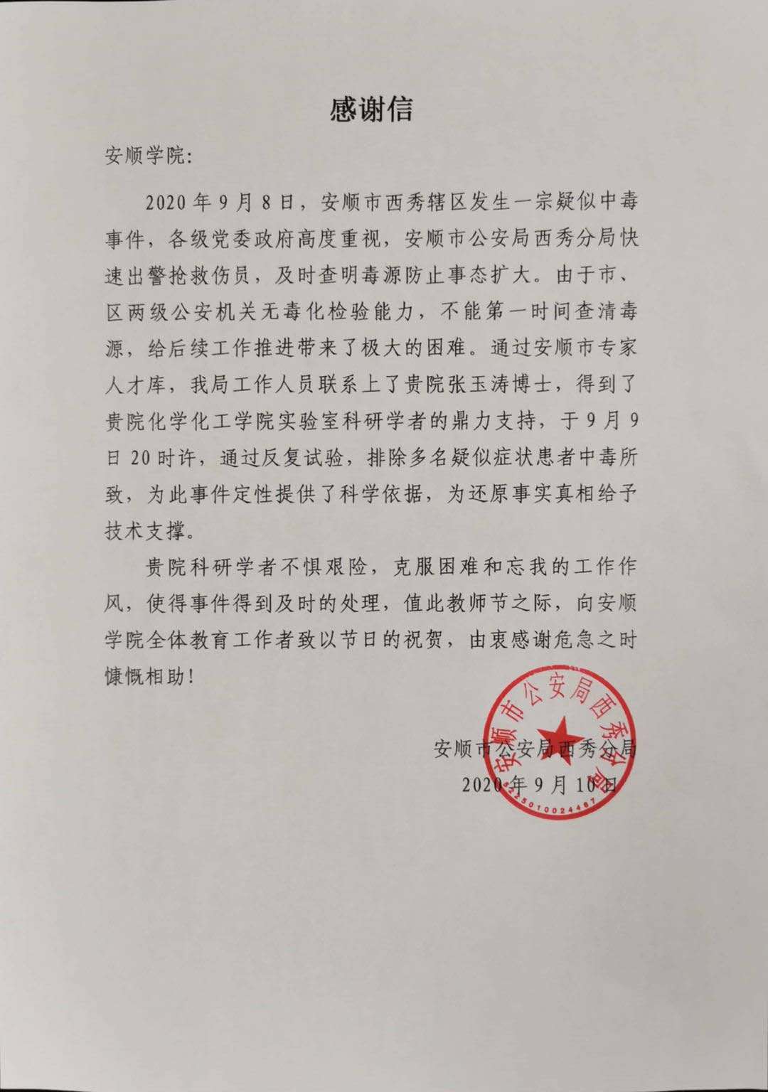 2020年9月8日,安顺市西秀辖区发生一宗疑似中毒事件,各级党委政府高度重视,但由于市、区两级公安机关无毒化检验能力,不能第一时间查清毒源,给后续工作推进带来了极大的困难。