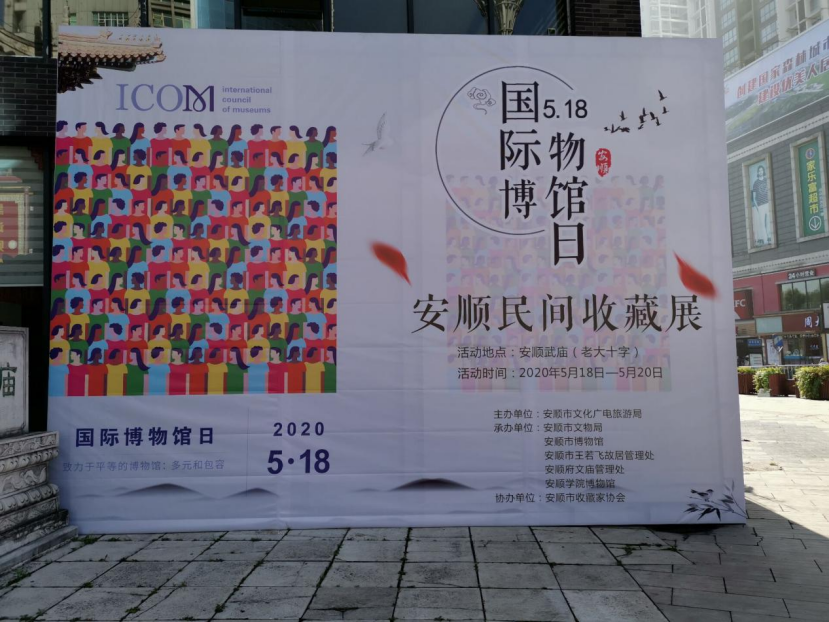 5月18日早上10点,由安顺文化广电旅游局主办,奇乐棋牌博物馆与安顺市文物局、安顺市博物馆等多家单位共同承办的“安顺民间收藏展”在市文化广电旅游局傅震兴副局长的讲话中拉开帷幕。展览活动在武庙举办,展品从安顺市博物馆文物藏品、安顺市收藏家协会会员的藏品中精选具有安顺本土特色的蜡染、地戏面具、古陶瓷、古铜镜、钱币、字画、奇石、安顺老照片等500余件藏品进行陈列展览。展出时间:5月18日到5月20日,为期3天。