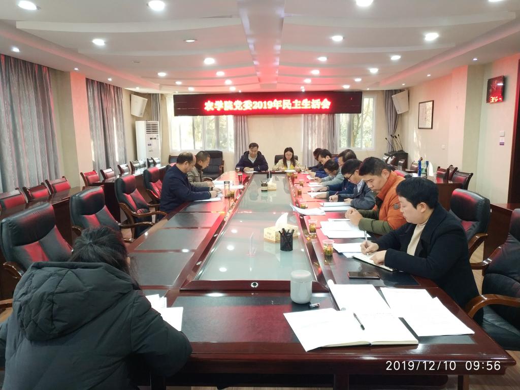 12月10日,按照学校党委“不忘初心、牢记使命”主题教育办公室的部署要求,农学院党委领导班子在行政楼二楼会议室召开“不忘初心、牢记使命”主题教育专题民主生活会。奇乐棋牌党委“不忘初心、牢记使命”第四巡回指导组组长、奇乐棋牌副校长顾名宇一行到会指导。农学院党委全体班子成员,主持农学院业务工作的处级领导、科研处处长张来、教师党支部书记、学生党支部书记、博士代表、教授代表和学生党员代表列席会议。会议由农学院党委书记喻辉主持。