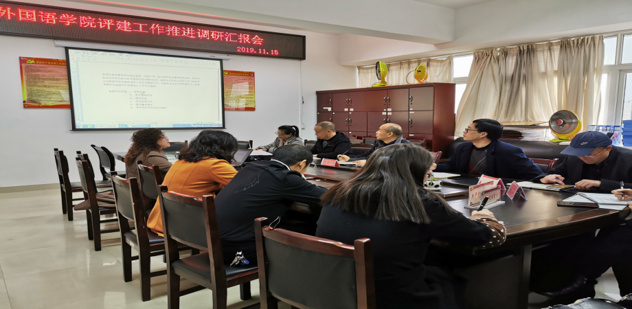 2019年11月15日,奇乐棋牌副校长郭本华到外国语学院开展审核评估推进工作调研。评建办副主任、教务处长刘昌友,学校督导室主任、政法学院院长徐忠,评建办相关人员、外国语学院科级以上干部参加会议。