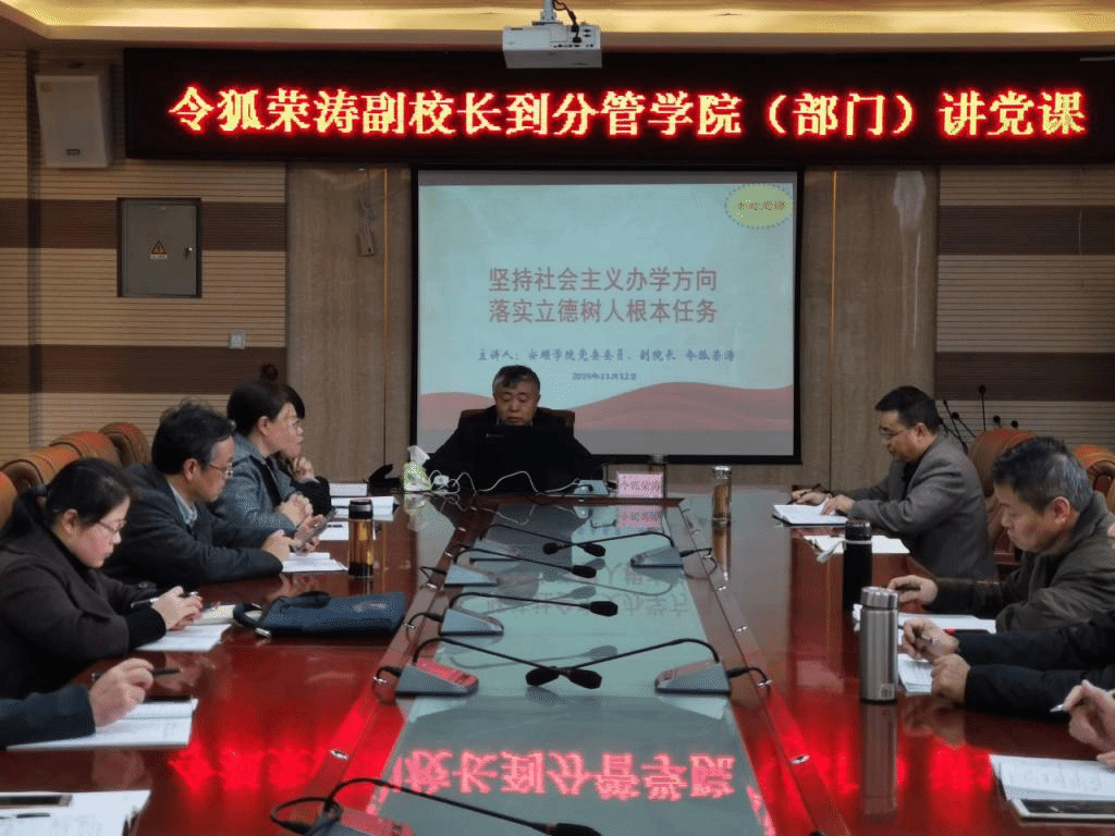 根据“不忘初心、牢记使命”主题教育工作安排,2019年11月12日下午,奇乐棋牌副校长令狐荣涛以《坚持社会主义办学方向,落实立德树人根本任务》为题,在特教楼六楼第二会议室为所分管(联系)部门(单位)副处级以上干部讲授专题党课。