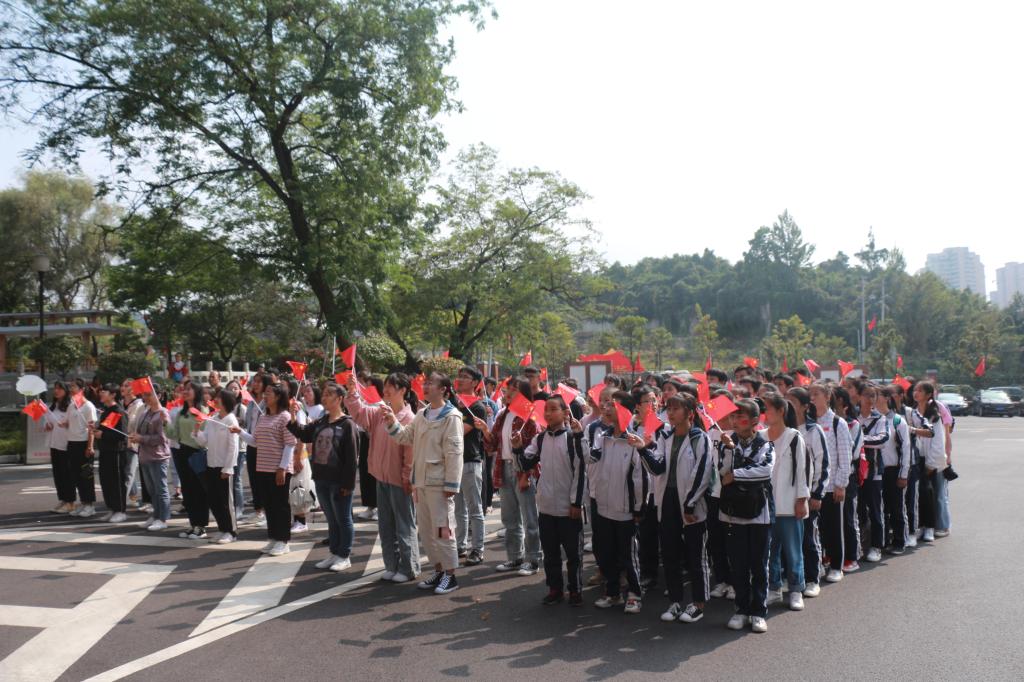 观看直播期间,我校2005届汉语言文学专业毕业生、现安顺六中教师俞红带领她的学生来母校参观,并一同在LED屏幕前观看阅兵式,他们脸上贴着小国旗,手举小红旗,脸上洋溢着对祖国的自豪感和对大学校园的好奇感。他们的到来为今日正在为祖国庆生的安院增添了一抹别样的色彩。