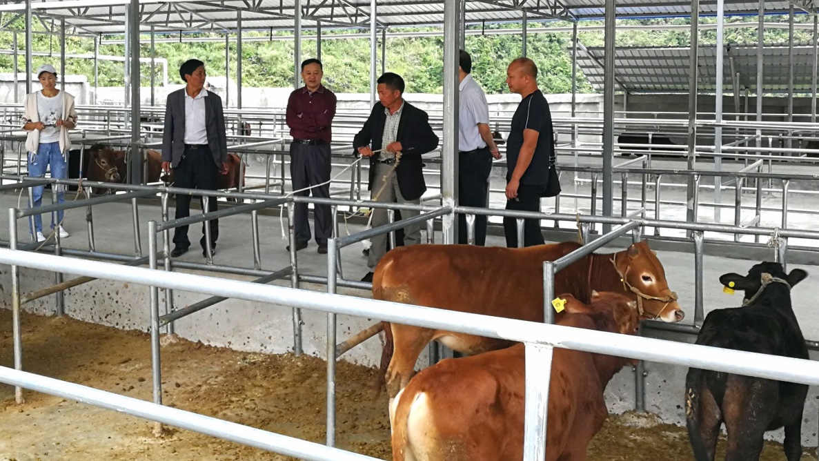吴次南校长(左3)考察平寨村岜山养牛场