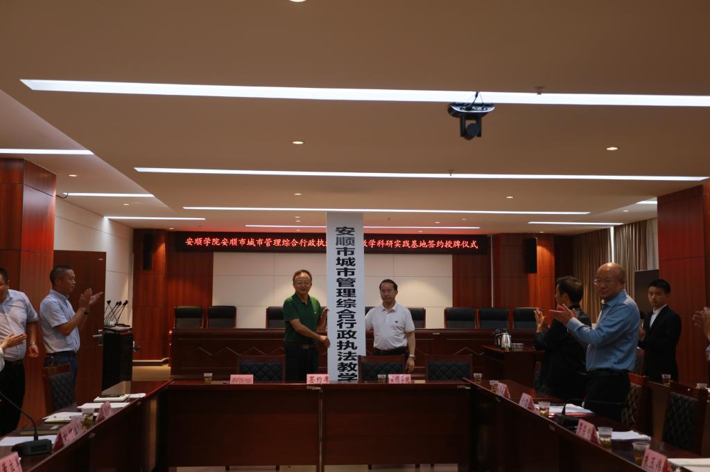 罗荣彬书记向安顺市城市管理综合行政执法局授予教学实践基地牌子