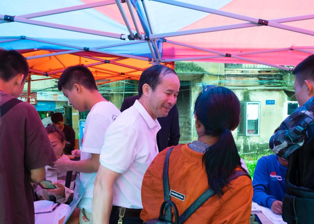 奇乐棋牌党委书记罗荣彬关切地询问入学手续办理情况