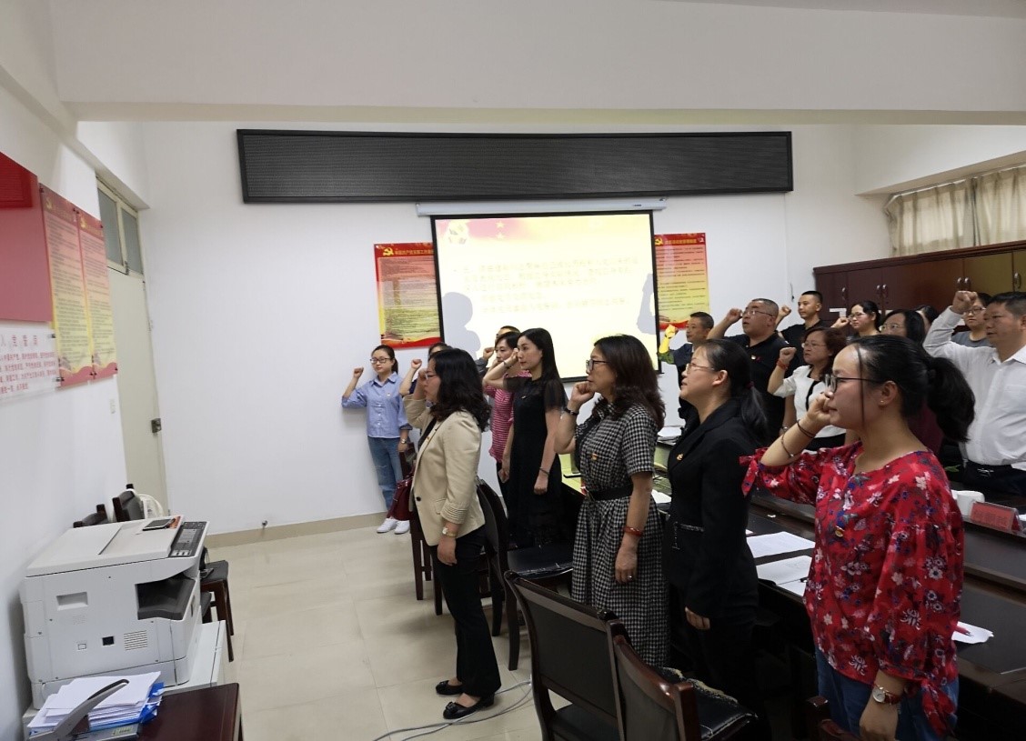 最后,全体党员起立,在刘碧芬同志的带领下重温入党誓词,现场庄重严肃。