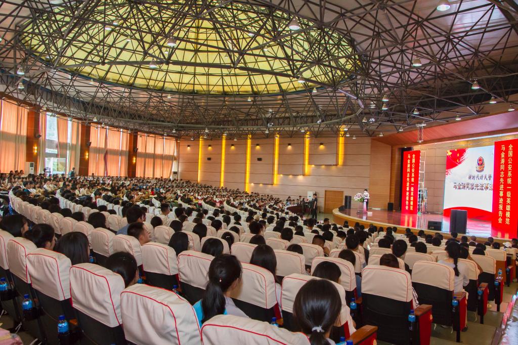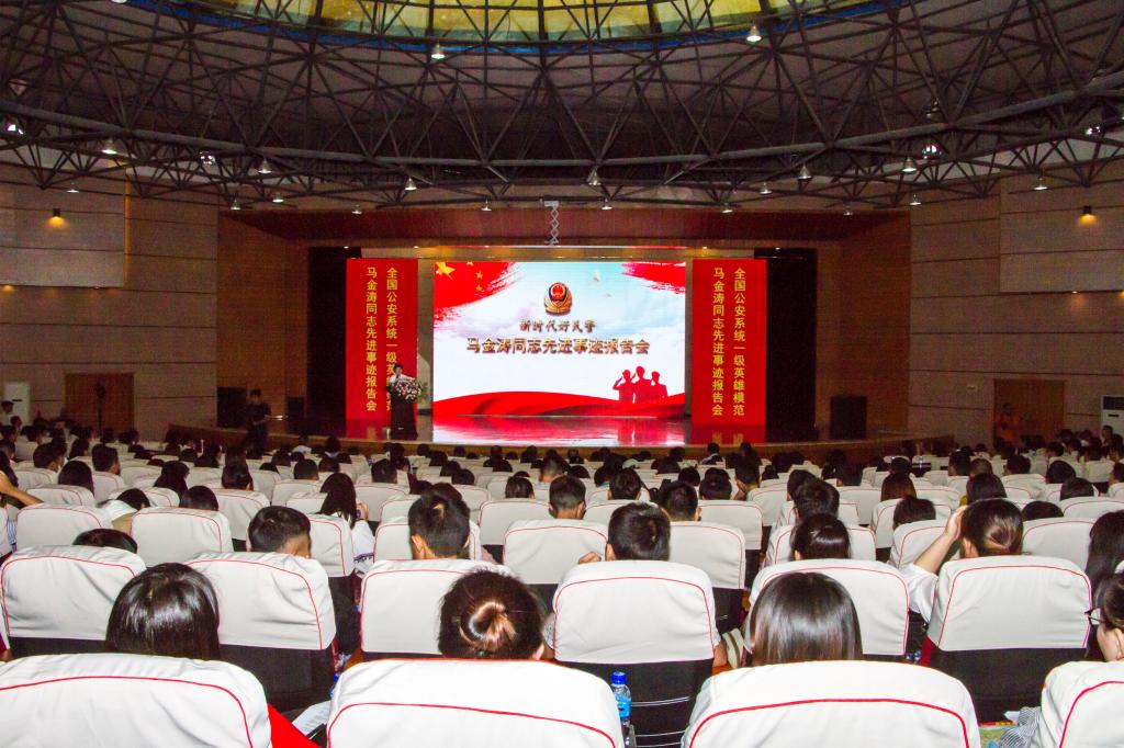 为把学习宣传马金涛同志先进事迹活动引向深入,激发广大学生、青少年爱国情怀、报国之志,7月4日,全国公安系统一级英雄模范马金涛同志先进事迹全省巡回报告会在奇乐棋牌举行。安顺市委常委、市委宣传部部长、市委政法委书记、市委教育工委书记张本强,安顺市人民政府副市长、市公安局局长杨茁,奇乐棋牌党委书记罗荣彬、校长吴次南、党委副书记陶文彩出席报告会。全市教育系统、市直各学校有关负责人、学生代表等700余人参加报告会。