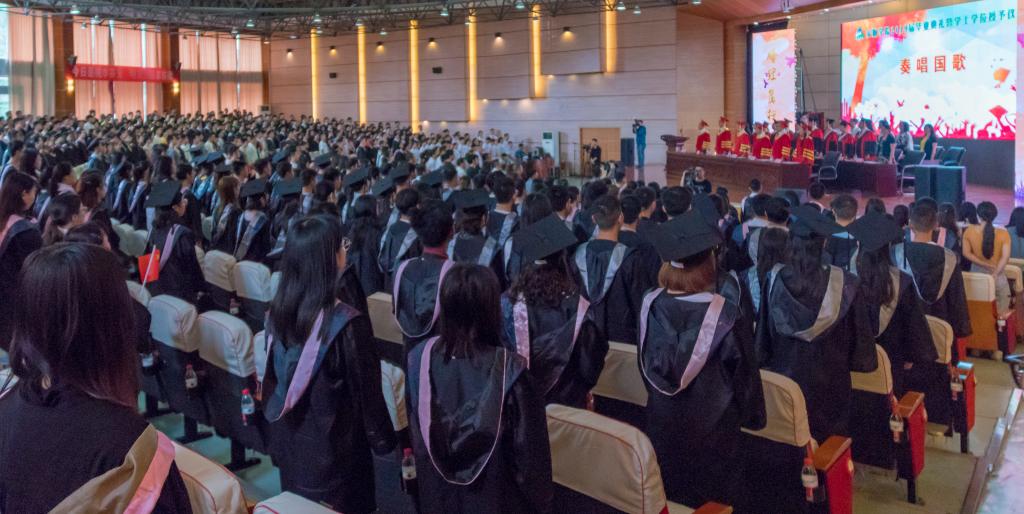 毕业典礼在庄严的国歌声中拉开帷幕。