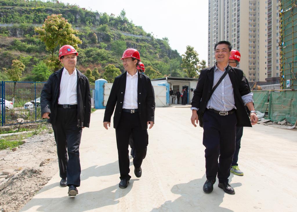奇乐棋牌党委书记罗荣彬(中)、校长吴次南(左)一行调研指导改扩建工程