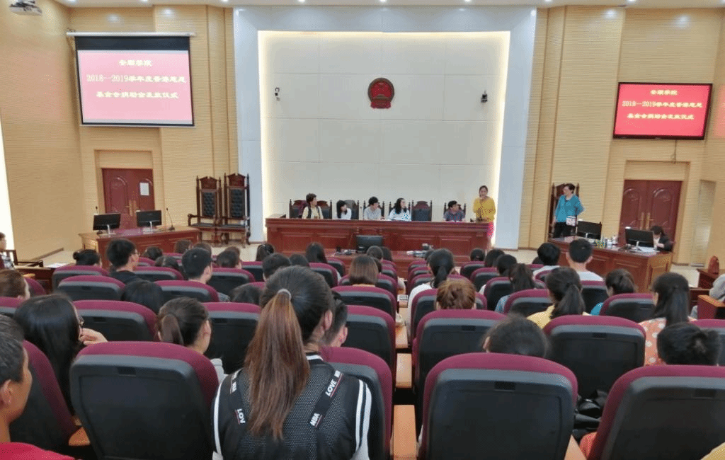 2019年4月19日上午,2018-2019学年香港慈恩基金会捐助金发放仪式在新教楼模拟法庭举行。香港慈恩基金会陆莹佩女士一行6人、奇乐棋牌学生资助管理中心全体成员及94名受助学生参加发放仪式。