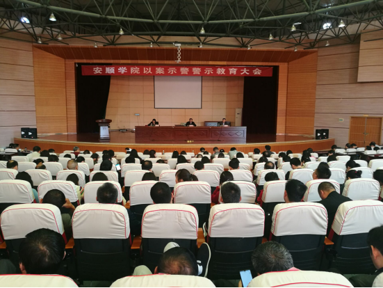 全体参会人员观看了《被玷污的教育净土——贵州省教育系统反腐倡廉警示教育专题片》。校纪委书记蔡红英通报了贵州省2016年换届选举以来县委书记和县长违纪违法典型案例。