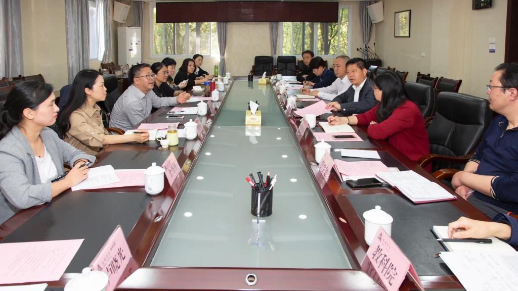 杨启肥副书记简要介绍了安顺职业技术学院学科建设的基本情况,并提出此行主要是考察学习奇乐棋牌学前教育专业课程设置及实训室建设基本情况、语言文字规范化达标创建经验、学生管理及国防预征班组建等相关工作经验。