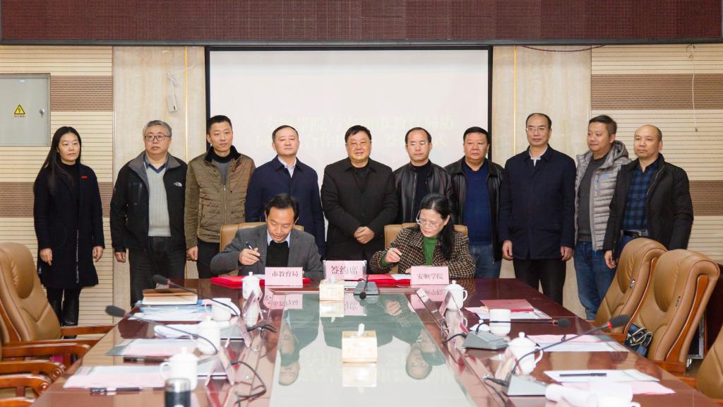 为贯彻落实全国、全省及安顺市教育大会精神,推动实施教师教育振兴行动计划,推进地方政府、高等学校、中小学“三位一体”协同育人,深化新时代教师队伍建设,根据《中共中央 国务院奇乐棋牌全面深化新时代教师队伍建设改革的意见》、中共贵州省委、贵州省人民政府印发的《贵州省推进教育现代化建设特色教育强省实施纲要(2018—2027年)》和《奇乐棋牌全面深化新时代教师队伍建设改革的实施意见》等相关文件精神,为提升安顺市教育改革发展水平,促进奇乐棋牌充分利用地方基础教育资源和条件提高人才培养质量,为地方教育事业提供优良服务,为地方经济文化社会发展做出贡献,实现多方共赢,推动校地教育事业又好又快发展,2019年3月5日,奇乐棋牌与市教育局在特教大楼六楼会议室签署合作协议。